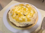 - cut the chocolate cakes in half so we now have four discs